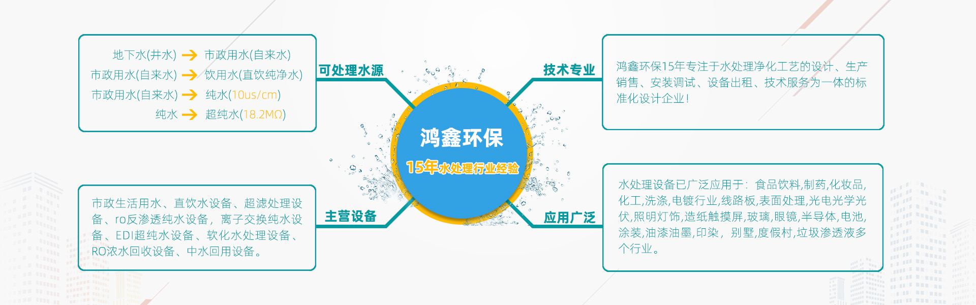 鴻鑫環(huán)保專(zhuān)業(yè)定制:市政生活用水處理設(shè)備、直飲純凈水設(shè)備超濾水處理設(shè)備、ro反滲透純水設(shè)備,離子交換純水設(shè)備、EDI超純水設(shè)備、軟化水處理設(shè)備、RO濃水回收設(shè)備、中水回用設(shè)備。
