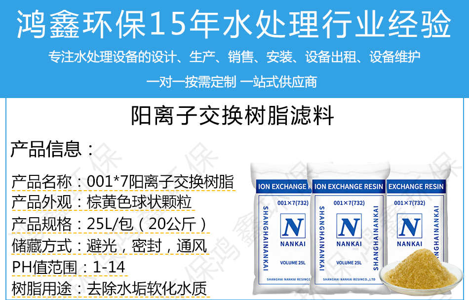軟化水樹脂(001*7(732)離子交換樹脂)是裝在玻璃纖維罐內(nèi),在水通過時將水中的硬度離子進(jìn)行置換。就是通常所說的“離子交換軟化法”其原理如下:離子交換水處理是指采用離子交換劑,使交換劑中和水溶液中可交換離子產(chǎn)生符合等物質(zhì)的量規(guī)則的可逆性交換,導(dǎo)致水質(zhì)改善而交換劑的結(jié)構(gòu)并不發(fā)生實(shí)質(zhì)性(化學(xué)的)變化的水處理方式。在這種水處理方式中,只有陽離子參與交換反應(yīng)的,稱陽離子交換水處理;只有陰離子參與交換反應(yīng)的,稱陰離子交換水處理;既有陽離子又有陰離子參與交換反應(yīng)的,稱陽、陰離子交換水處理。由于原水的水質(zhì)差別較大,而對出水水質(zhì)的要求又多種多樣。