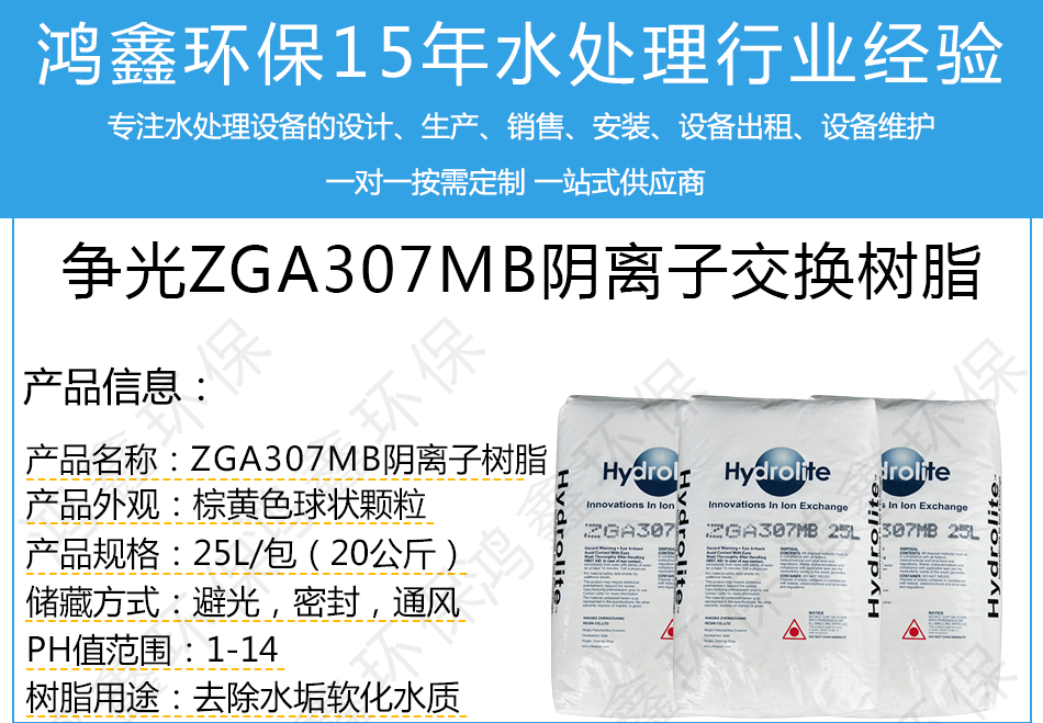“爭(zhēng)光”牌201x7MB(ZGA307MB)是在交聯(lián)為7 %的苯乙烯—二乙烯苯共聚體上帶有季銨基[—N(CH3)3OH]的陰離子交換樹脂。主要用于混床設(shè)備或凝結(jié)水精處理啟動(dòng)運(yùn)行,也用于廢水處理、生化制品及濕法冶金中鎢、鉬的提取, ZGA307樹脂系列包含四個(gè)品種,其中ZGA307為通用性產(chǎn)品;ZAG307SF適用于雙層床、雙室床、浮動(dòng)床系統(tǒng);ZGA307FC適用于雙室床、浮動(dòng)床系統(tǒng);ZAG307MB適用于混床系統(tǒng)。