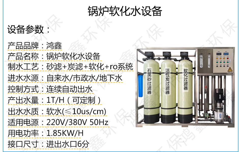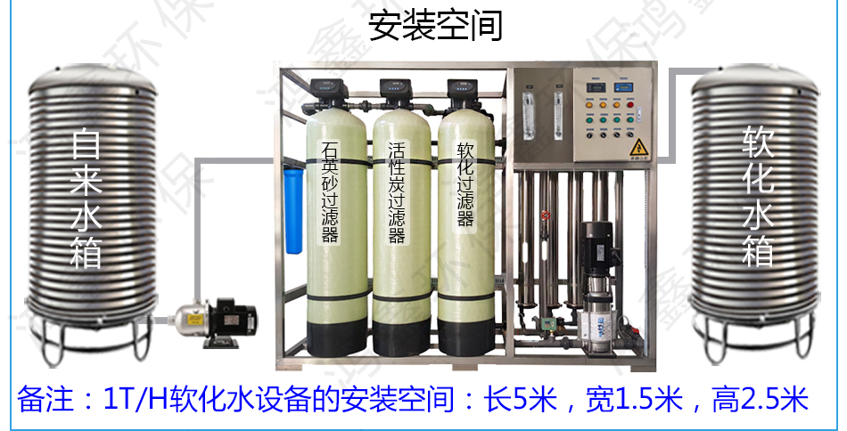 1:砂過濾+炭過濾+軟化過濾=軟化水