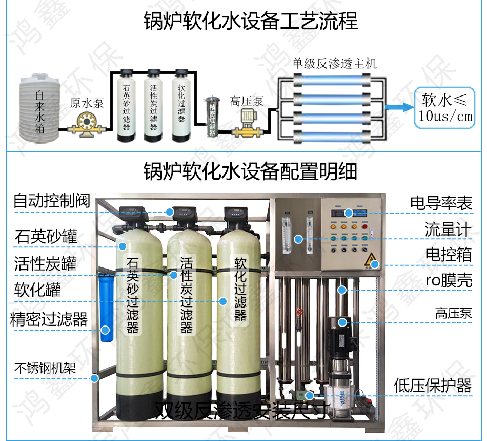 2:砂過濾+炭過濾+ro反滲透系統(tǒng)=軟化水