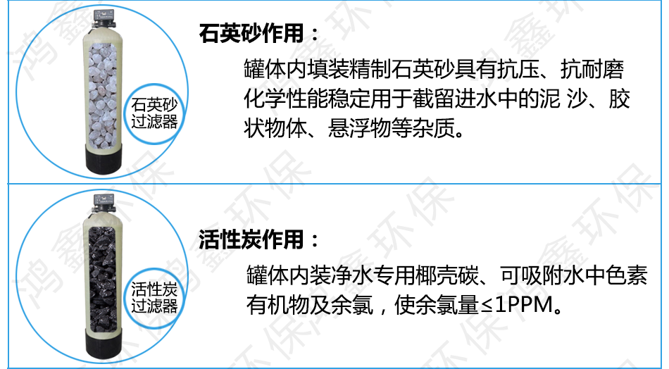 2:砂過(guò)濾+炭過(guò)濾+ro反滲透系統(tǒng)=軟化水