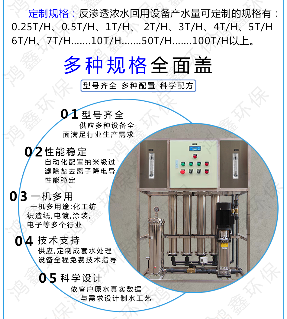 鴻鑫環(huán)保專業(yè)定制:市政生活用水處理設(shè)備、直飲純凈水設(shè)備超濾水處理設(shè)備、ro反滲透純水設(shè)備,離子交換純水設(shè)備、EDI超純水設(shè)備、軟化水處理設(shè)備、RO濃水回收設(shè)備、中水回用設(shè)備。