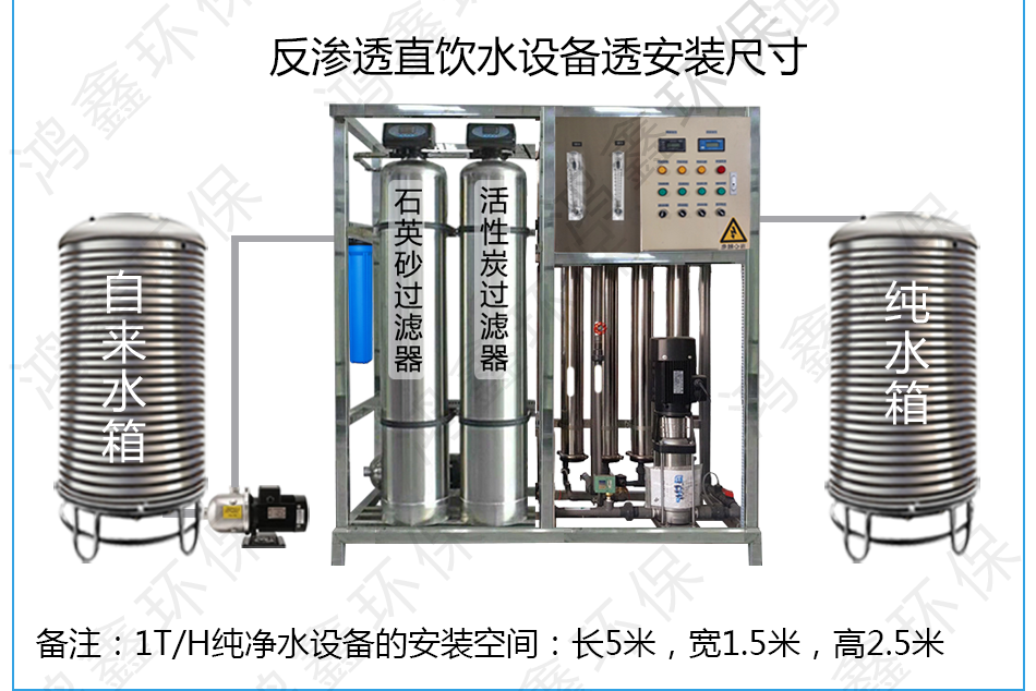 反滲透直飲水設(shè)備也是純凈水設(shè)備,由原水箱+原水泵+石英砂過濾器+活性炭過濾器+RO反滲透主機(jī)過濾系統(tǒng)+紫外線殺菌器+純凈水箱這些裝置組成,設(shè)備預(yù)處理罐體所用的材質(zhì)是304食品級不銹鋼材質(zhì),出水口加了紫外線殺菌消毒功能。出水可直飲。