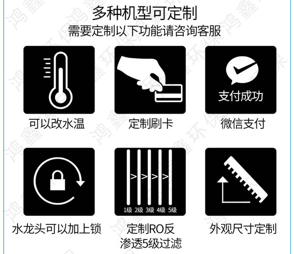 鴻鑫環(huán)保專業(yè)定制:市政生活用水處理設(shè)備、直飲純凈水設(shè)備超濾水處理設(shè)備、ro反滲透純水設(shè)備,離子交換純水設(shè)備、EDI超純水設(shè)備、軟化水處理設(shè)備、RO濃水回收設(shè)備、中水回用設(shè)備。
