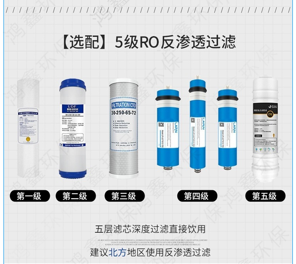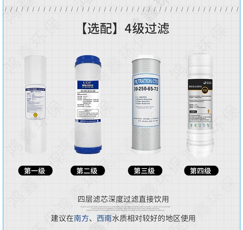 4:四級濾芯采用RO反滲透膜,過濾精度高達(dá)0.0001微米作為核心凈化工藝,能有效去除水中細(xì)菌、病毒、重金屬、有機(jī)化合物等。
