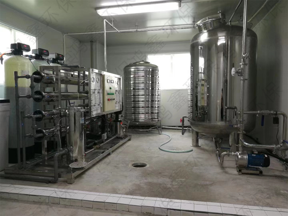 2:原水箱+原水泵+石英砂過濾器+活性炭過濾器+雙級(jí)反滲透系統(tǒng)+超純水箱=電際率≤5us/cm。