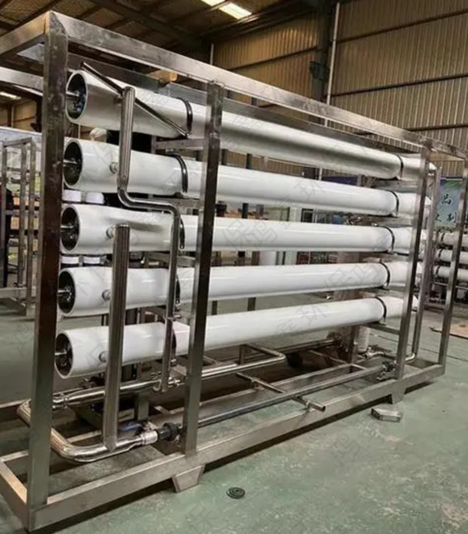 其中預(yù)處理的由石英沙過濾裝置,活性碳過濾裝置,精密過濾裝置組成,主要目的是去除原水中含有的泥沙、鐵銹、膠體物質(zhì)、懸浮物,色素、異味、生化有機(jī)物,降低水的余氯值及農(nóng)藥污染等有害的物質(zhì)。如果原水中鈣鎂離子含量較高時(shí),還需增加軟水裝置,主要目的在于保護(hù)后級(jí)的反滲透膜不受大顆粒物質(zhì)的破壞,從而延長(zhǎng)反透膜的使用壽命。