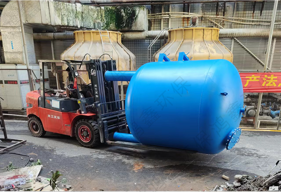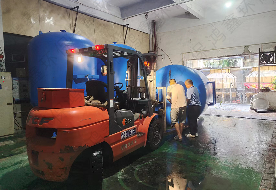 佛山三水塑膠廠35噸的純水設(shè)備安裝了,設(shè)備的罐體太大,人工搬運不了,只好請叉車來搬運到安裝位置,然后人工再裝砂,炭,ro膜這些耗材,第一天沒安裝好,第二天又去了才裝好,調(diào)試好。